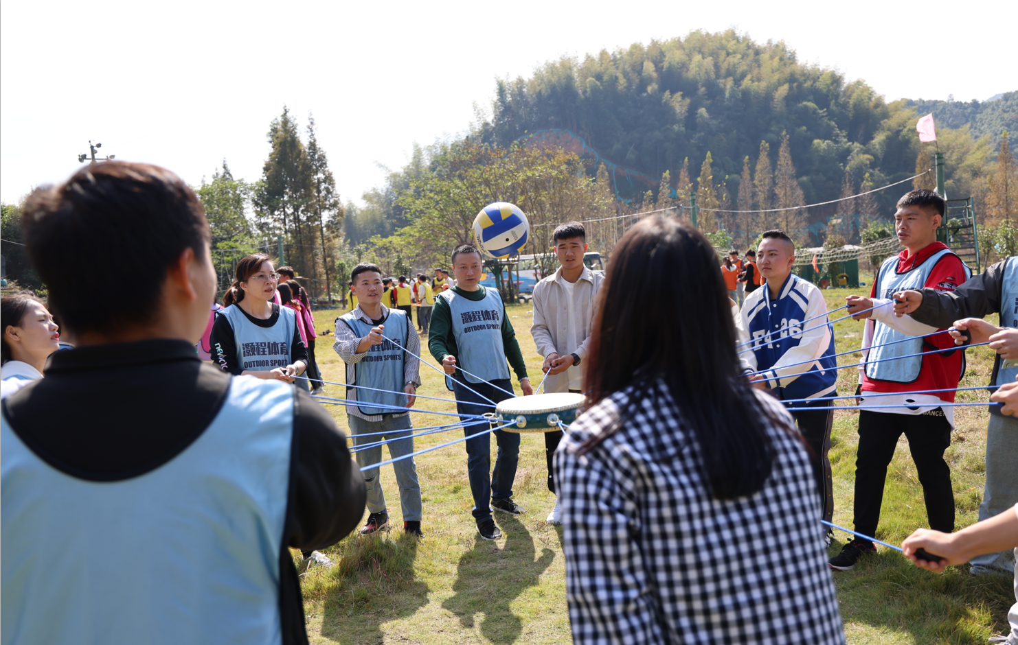 隨后四支隊(duì)伍依次開(kāi)始了“擊鼓顛球”團(tuán)隊(duì)項(xiàng)目,這是一種互動(dòng)性強(qiáng)、易智、趣味,能考驗(yàn)團(tuán)隊(duì)默契的運(yùn)動(dòng),最終“獨(dú)孤求敗隊(duì)”拿下了團(tuán)隊(duì)項(xiàng)目第一名。