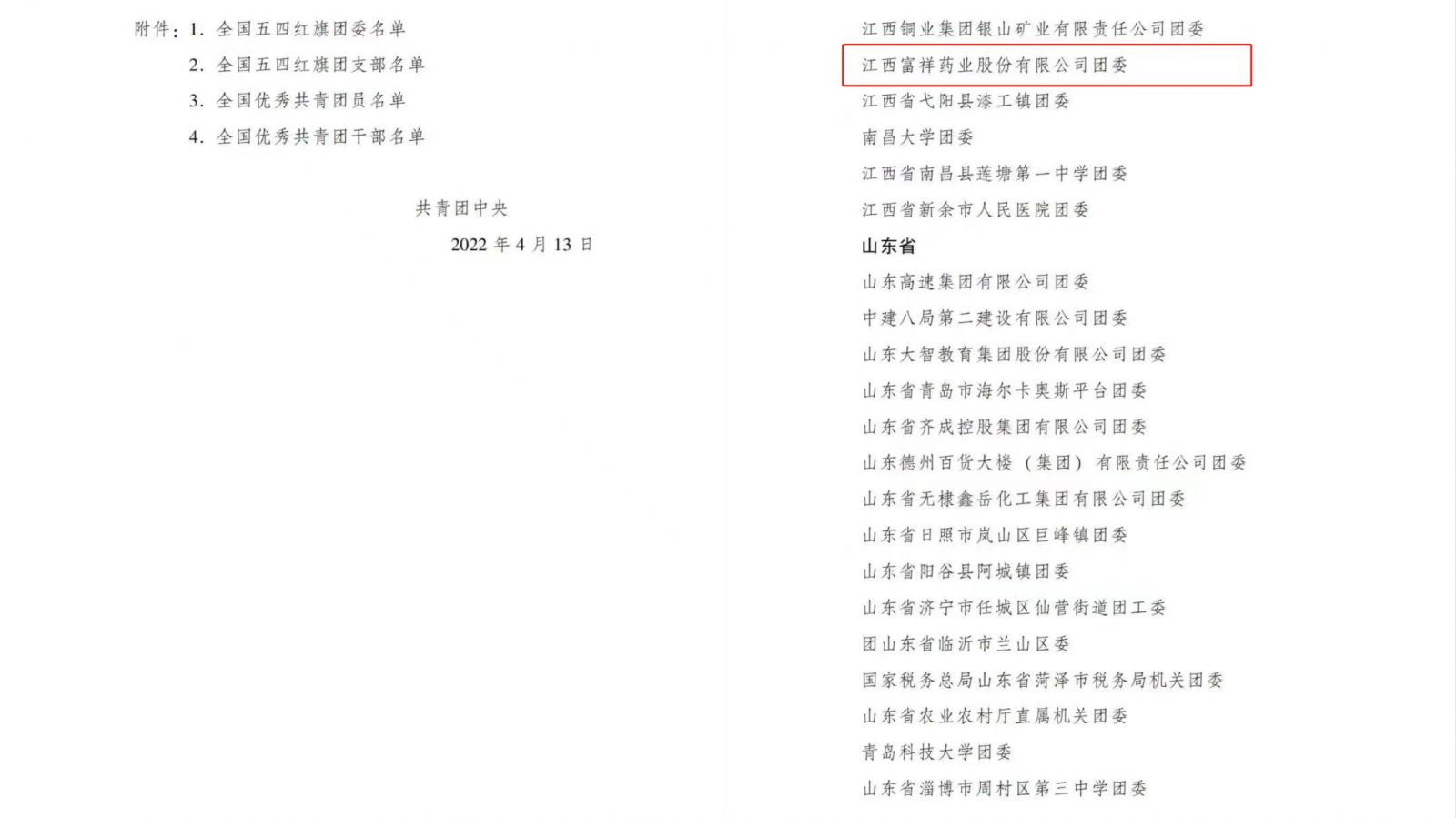 喜報!富祥藥業(yè)團委榮獲“全國五四紅旗團委”稱號