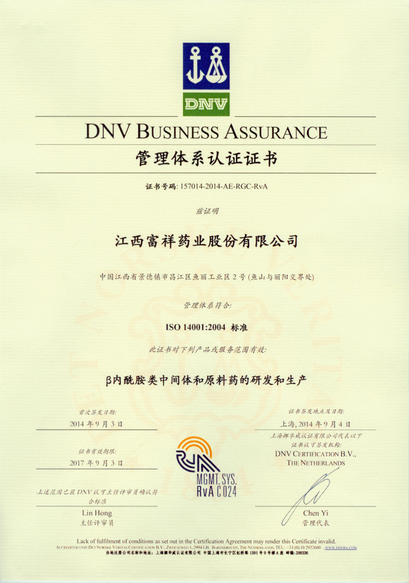 2011年12月,公司成為江西省第一家通過清潔生產(chǎn)審核驗收的企業(yè)。 2012年1月,通過安全生產(chǎn)標準化評審,并于5月獲得安全標準 化二級企業(yè)達標證書。 2014年9月,公司順利通過DNV(挪威船級社)ISO 14001環(huán)境管理體系驗證和OHSAS 18001職業(yè)健康安全管理體系驗證。