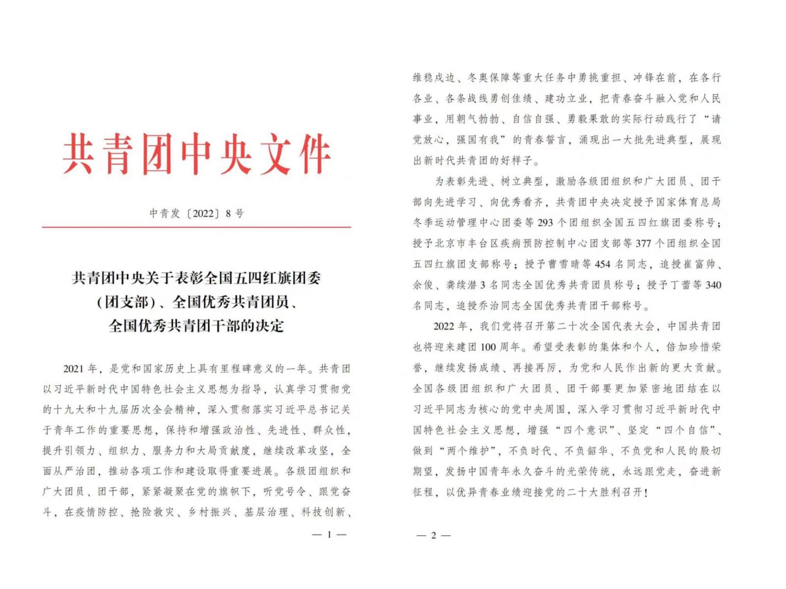 2022年是中國共青團成立100周年。近日,共青團中央作出表彰決定,授予293個團組織全國五四紅旗團委稱號,授予377個團組織全國五四紅旗團支部稱號,授予457人(含追授3人)全國優(yōu)秀共青團員稱號,授予341人(含追授1人)全國優(yōu)秀共青團干部稱號。