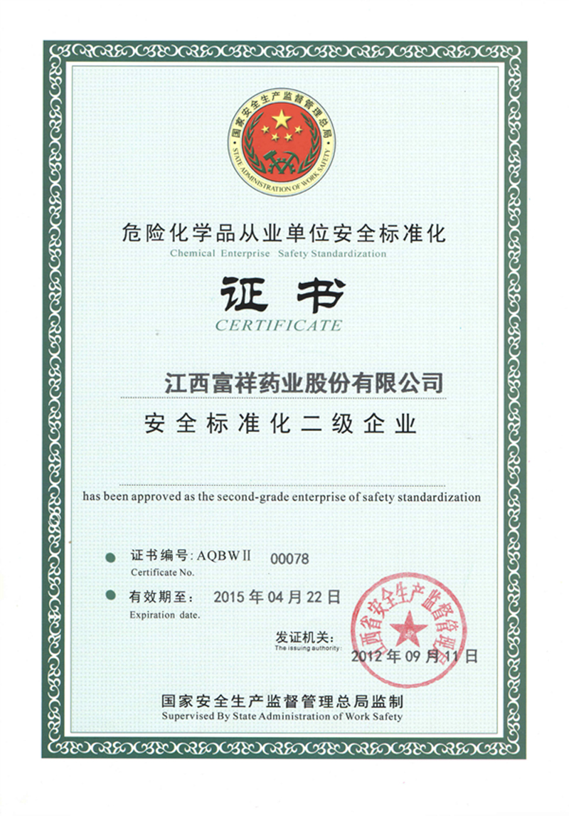 2011年12月,公司成為江西省第一家通過清潔生產(chǎn)審核驗收的企業(yè)。 2012年1月,通過安全生產(chǎn)標準化評審,并于5月獲得安全標準 化二級企業(yè)達標證書。 2014年9月,公司順利通過DNV(挪威船級社)ISO 14001環(huán)境管理體系驗證和OHSAS 18001職業(yè)健康安全管理體系驗證。